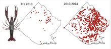Verspreiding van de Amerikaanse rivierkreeft in het beheergebied van Delfland door de jaren heen